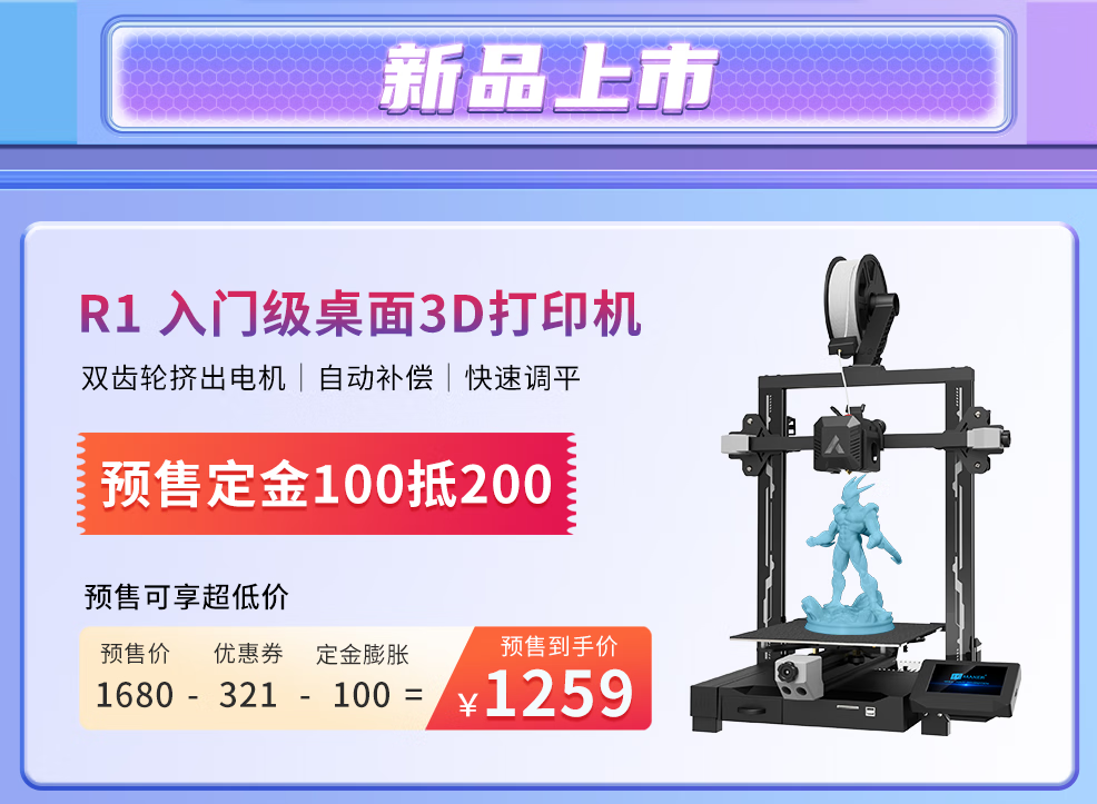 R1,全新入門級高精度3D打印機,新手入門0負擔!