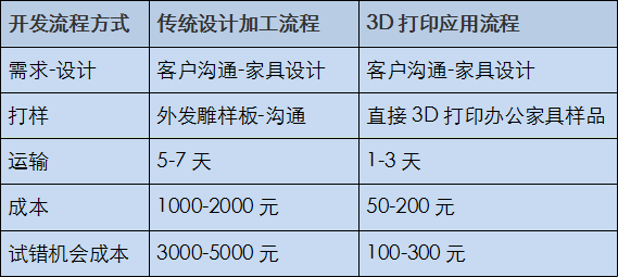 隨著消費模式的升級,“定制”化在很多行業(yè)都開始流行起來,個性、年輕、時尚等標簽不得不讓更多的企業(yè)開始轉型往定制化發(fā)展。然而當前的傳統(tǒng)設計加工方式無法滿足現(xiàn)有辦公家具廠商與時俱進的需求,對于辦公家具廠商來說,3D打印定制化應用恰好能夠助力辦公家具將產(chǎn)品快速打入市場。