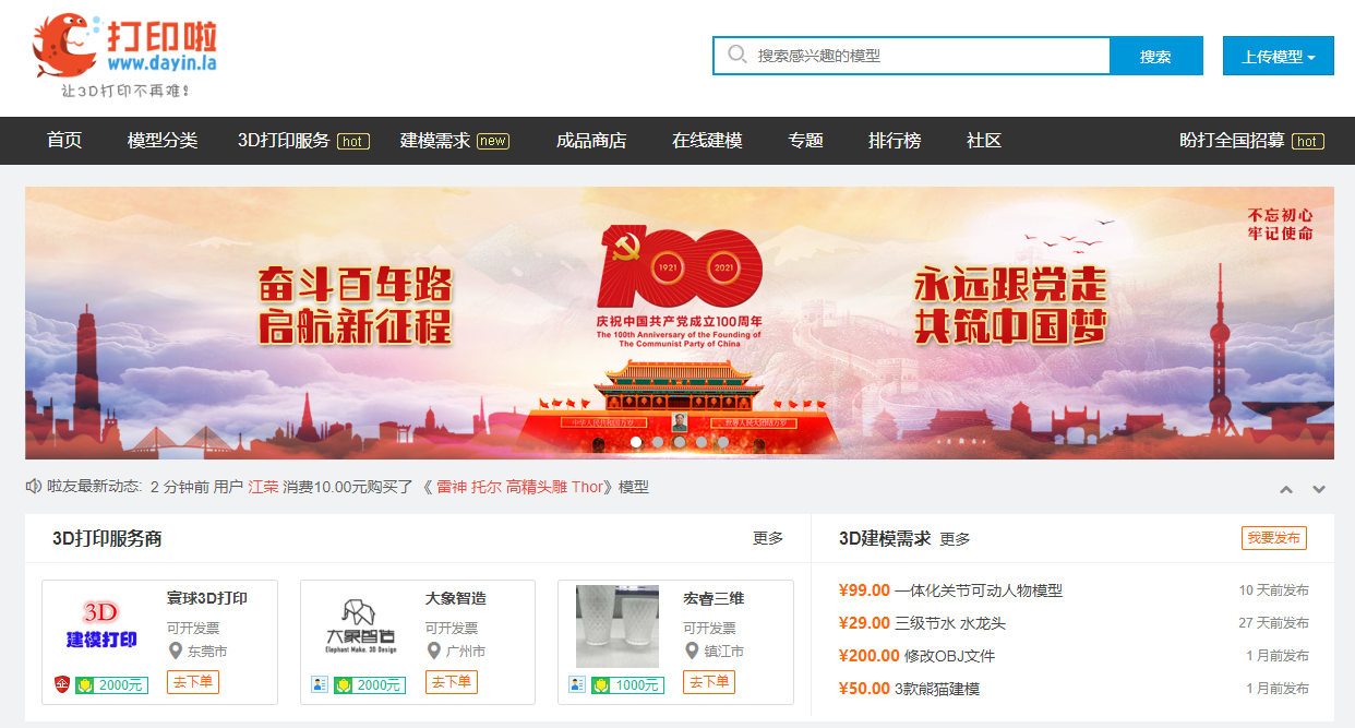 這是一個3D打印資源整合的一個網(wǎng)站,上面涵蓋的內(nèi)容也很全面,包括打印服務(wù)、社區(qū)、學(xué)習(xí)部落等模塊。